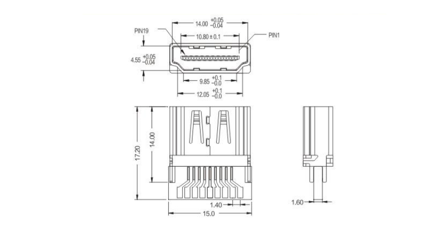 HDMI A/F 180°PCB1.60 mm(0.4)