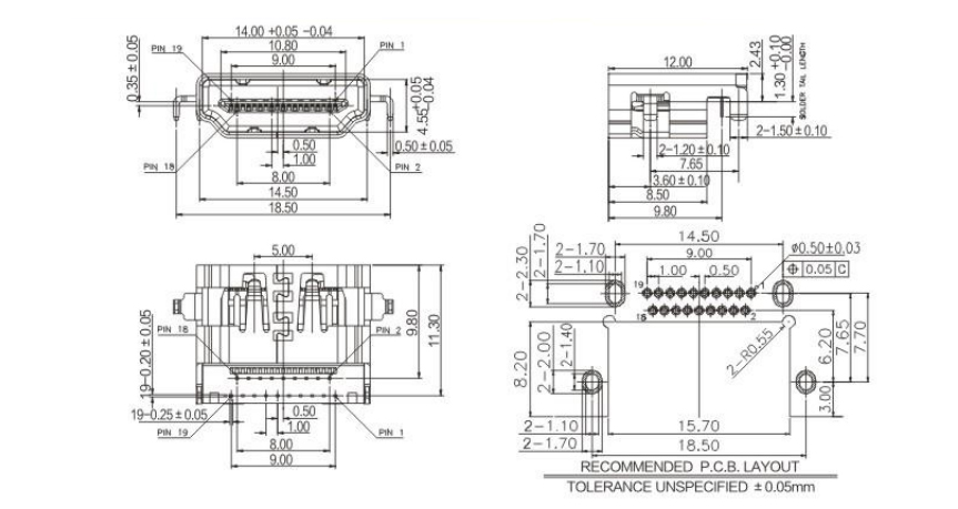 HDMI AF FEMALE 正向沉板DIP H2.43mm