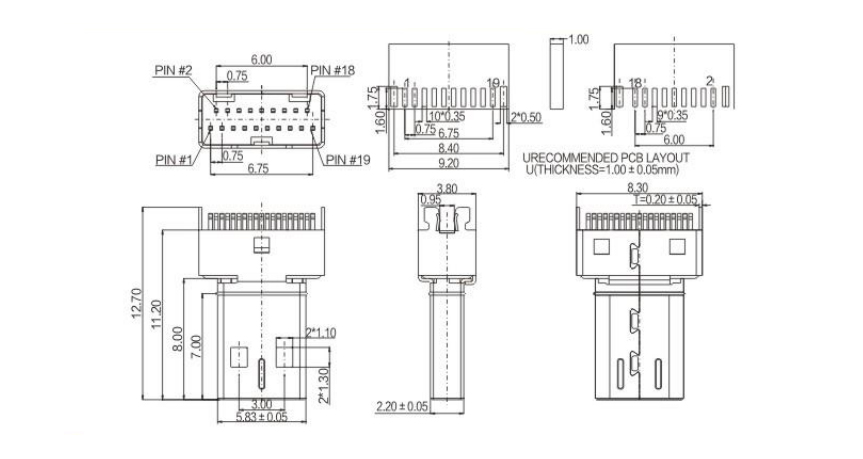 HDMI D TYPE MALE STRADDLE MOUNT TYPE(夾板1.0mm)
