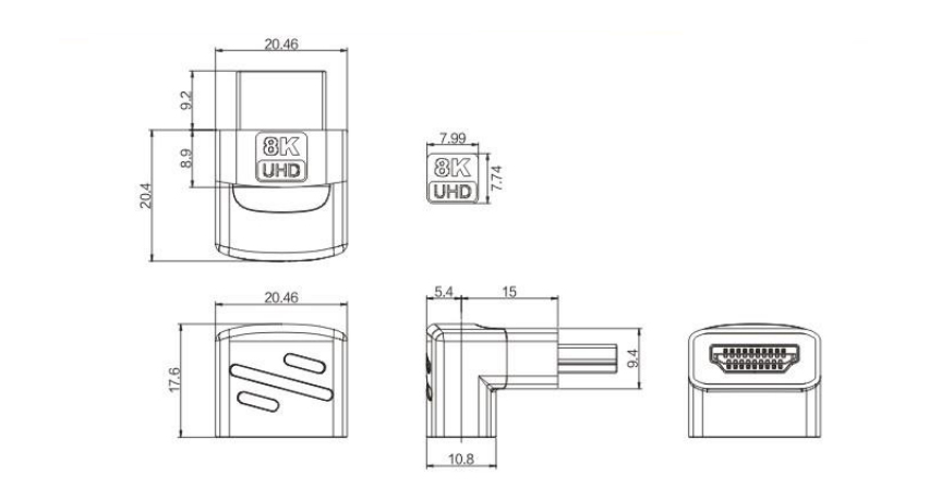 HDMI AM/AF 8K90°直彎轉(zhuǎn)接頭